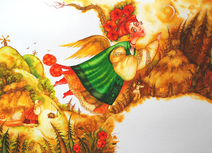 4. Ні, дідусю, я й не пила, я й не їла: тільки бігла через місточок та вхопила кленовий листочок, тільки бігла через гребельку та вхопила водиці крапельку, — тільки пила, тільки й їла!