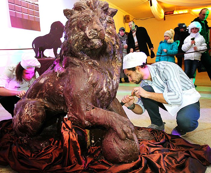 Невероятно, как в умелых руках мастера огромная шоколадная глыба превращается в величественный замок, пузатые домики или изящные цветы! Не обойдется на празднике и без фигуры льва. Приезжай на львовский праздник шоколада в феврале — пусть конец зимы будет весел и сладок.