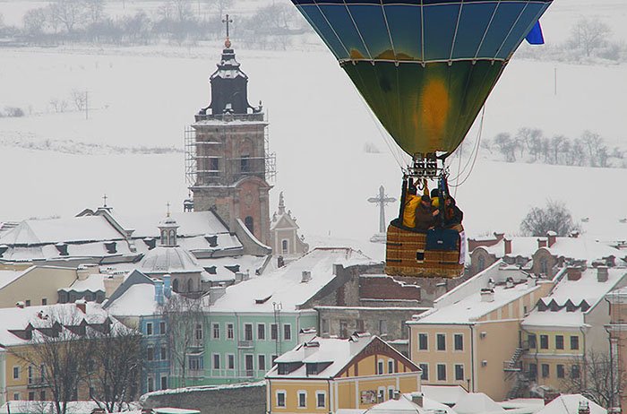 Полюбоваться невероятной красотой зимней природы с высоты птичьего полета можно в Каменце-Подольском. Для всех поклонников экстрима в первые дни нового года украинская столица воздухоплавания устраивает зрелищный фестиваль. Прогулка по старому городу, посещение местной крепости, встреча Рождества в дружеской атмосфере, зрелищное сияние аэростатов на закате и первый полет — что может быть прекраснее для безудержных романтиков и любителей приключений?!