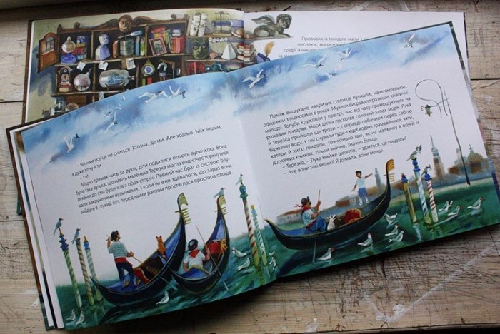 Разноцветные домики, соленый запах моря, водные трамвайчики, яхты, шаткие гондолы, туристы с фотоаппаратами и палками для селфи, на каждом шагу — сувенирные лавки с карнавальными масками и кружевными зонтиками, интересные архитектурные шедевры, — так автор описывает красоту жемчужины Италии. Вот и не могут ею налюбоваться Терезка и Лука, которые странным образом перенеслись в Венецию с дедушкиного кабинета. Путешествуй вместе с героями: познакомишься с господином Валерио, попробуешь блюда итальянской кухни, увидишь город с высоты птичьего полета, побываешь в мастерской стеклодувов...