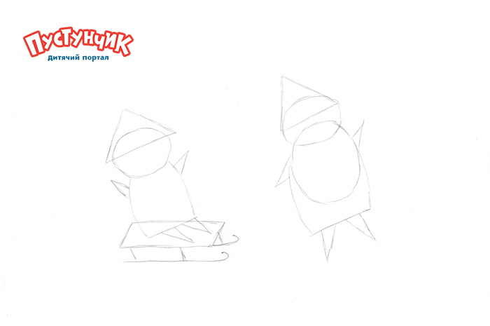 2. Дорисуй небольшие острые треугольники — руки и ноги наших героев.
