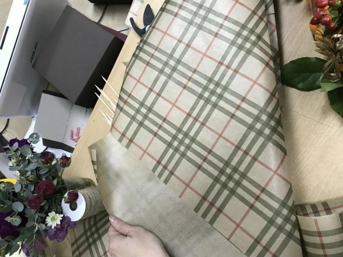 5. Крафтовая бумага поможет оформить твой праздничный букет. Нижнюю часть лучше закрыть.