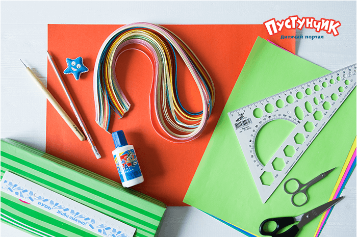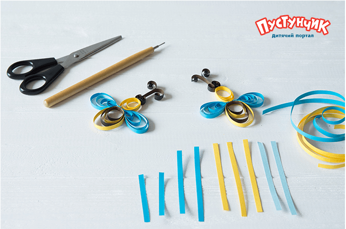 Для изготовления головы и усиков понадобится инструмент для квиллинга. Внимательно просмотри открытые формы модулей по ссылке выше. Тебе необходимо использовать «Спираль» и «Рожки».