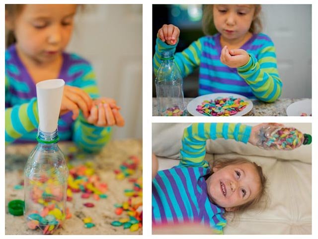 Подсушите семена в микроволновой печи. Все! Можно играть: пересыпать зерна в разные сосуды, выясняя их объем, или изготовить трескучую погремушку. Из остатков тыквы можно изготовить подсвечник или приготовить тыквенный суп.