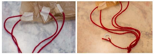 Тебе понадобятся: целлофановый пакетик, тоненькая веревка или нитка, груз (пластмассовый болтик от детской игрушки), скотч, ножницы.
