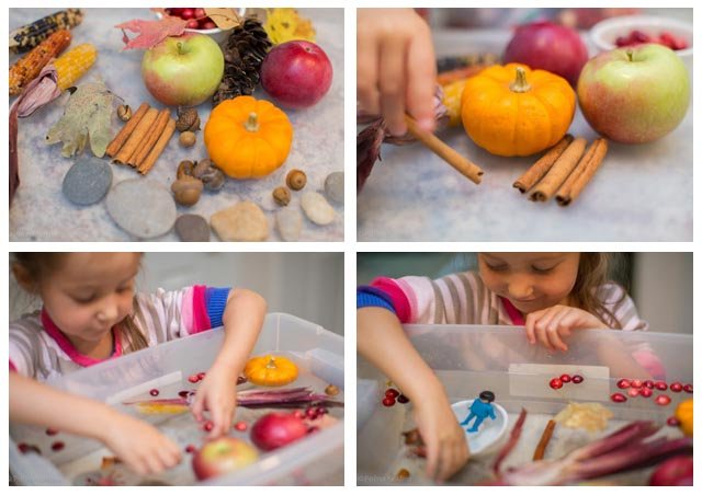 Волшебница-осень все никак не угомонится — все бросает наземь желтые листья, расшивает яркими нитями плоды и деревья, поливает все вокруг моросящим дождем. Собери роскошные осенние дары и устрой им большой заплыв. Шишки, желуди, палочки, шиповник, иголки, осенние овощи и фрукты, камешки и листья — интересно, что из этого утонет, а что останется плавать на поверхности? Сделай прогноз и проверь свои предсказания на практике.