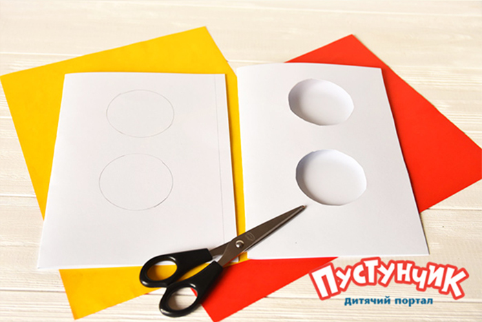 3. На титульном листе валентинки циркулем начерти два круга и вырежи с помощью ножниц.