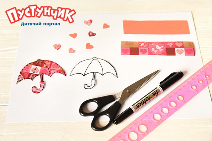 В День Валентина даже дождь может показаться романтично-прекрасным. Давай изготовим игривый зонтик, который не прячет нас, а наоборот — ловит дождик из розовых сердец.