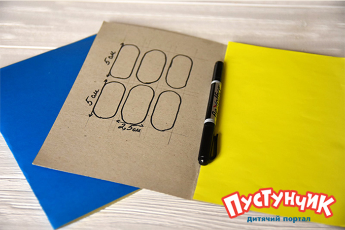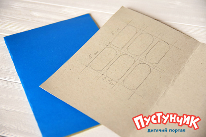 2. Разверни заготовку и начерти произвольную схему окна. У меня окошко с шестью отделениями шириной 2,5 см и высотой 5 см каждое. Осторожно вырежи отделения с помощью маникюрных ножниц.