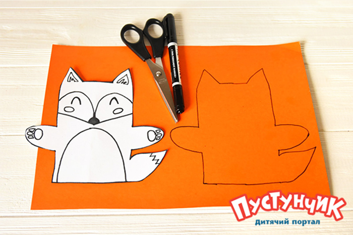 1. Распечатай шаблон лисички или нарисуй от руки. Вырежи по контуру.