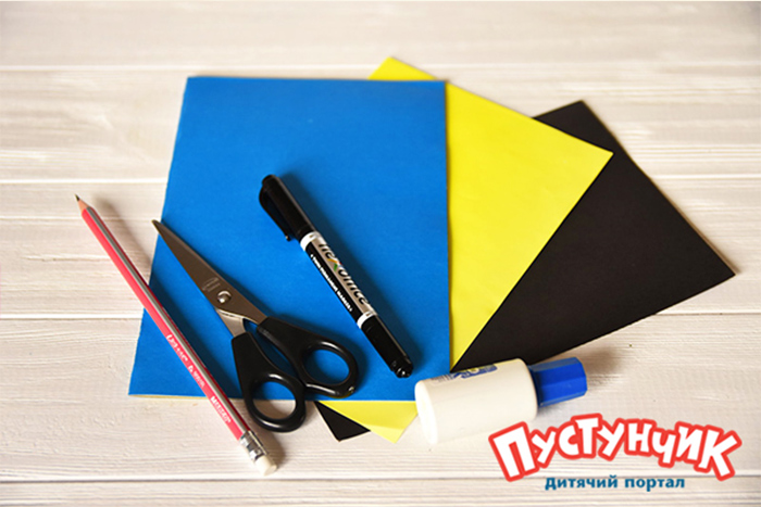 3. На третью страницу открытки (внутри справа) наклей половину листа желтой бумаги.