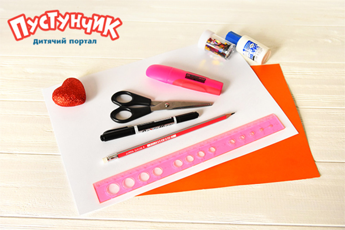 На полоске желтой бумаги печатными буквами напиши: «Ты — мой свет», разрежь на квадратики и приклей надпись к валентинке.