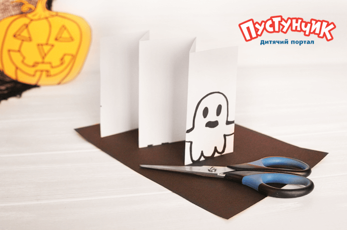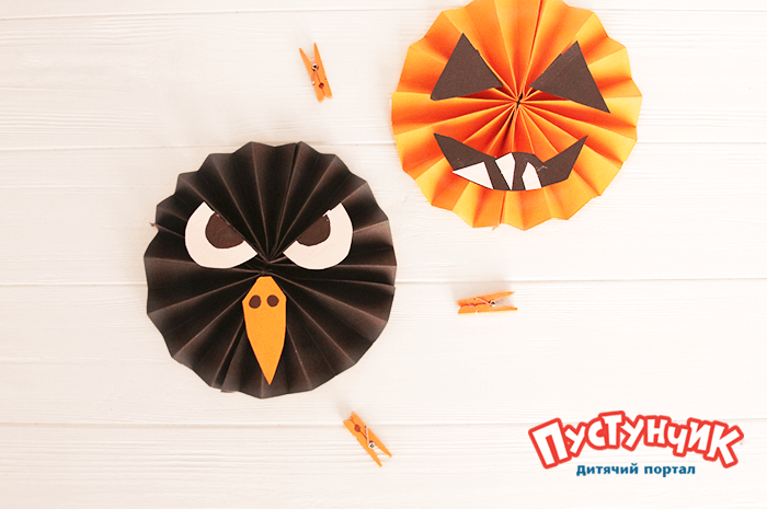 Шаг 3. Раскатываем гармошку. Дорисовываем глаза и ротик. Команда призраков готова напугать твоих друзей!