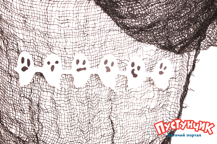 А можно сделать несколько больших-больших гирлянд из фигурок призраков и развесить вдоль комнаты прямо над головой. Будет эффектно!