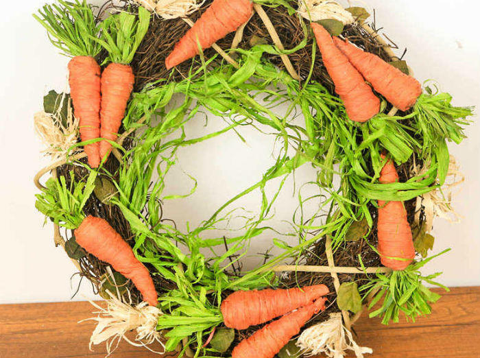 Оригинально выглядят кролики из помпонов или морковь из гофробумаги.