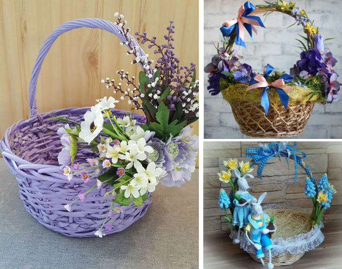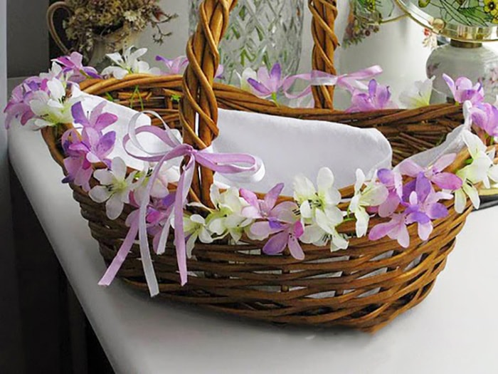 Интересный вариант — выстелить корзинку яркой тканью с принтом или декоративным сеном. Полюбуйся, какая красота, и попробуй повторить накануне похода в храм.