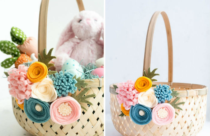 Идеальным украшением весенней корзины станут цветы из фетра. К делу!