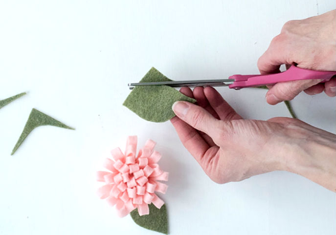 8. Добавь цветам естественности — приклей к ним зеленые листочки из фетра.