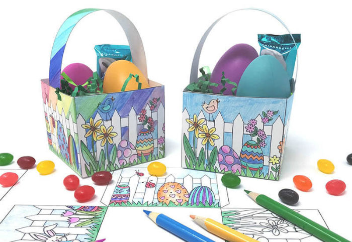 Пасхальные корзинки детают не только из лозы или соломы. И не только для освящения пасхальных лакомств. Есть декоративные корзины, похожие на горшки с цветами, предназначенные для украшения интерьера, а есть детские корзинки — для сувениров и сладостей. Именно такую красочную корзинку мы с тобой и изготовим из бумаги.
