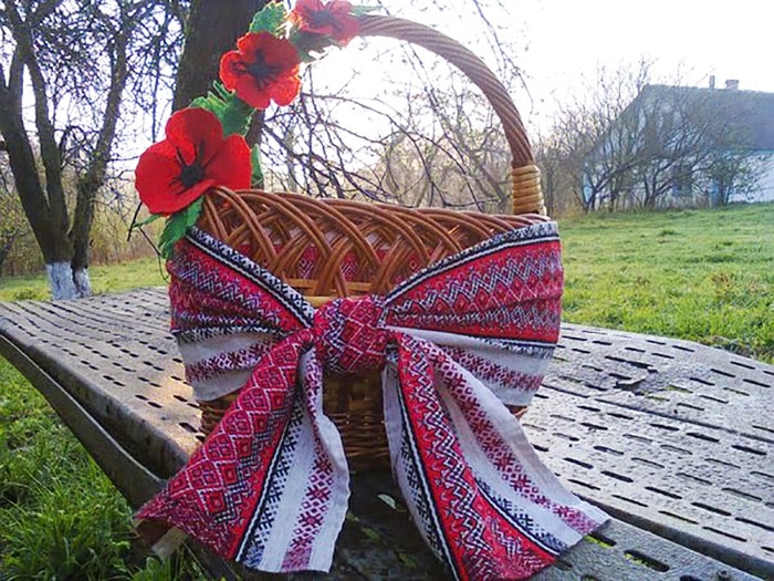 Но украсить пасхальную корзину можно и лентами, бумажными цветами, вышитым полотенцем, ивовыми веточками.