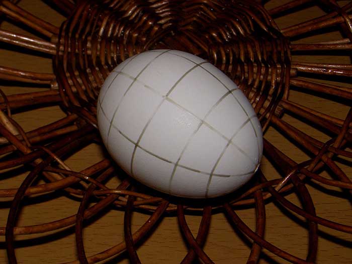 1. С помощью писачка раздели яйцо на восемь равных частей.