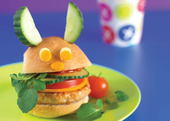 5. А теперь предлагаю пофантазировать! Выложи на бутербродах смешные гримасы или симпатичную мордочку животного. Для глаз идеально подойдут огурцы и маслины, для ушек — кусочки сыра или морковки, а для улыбки — сочный помидор.